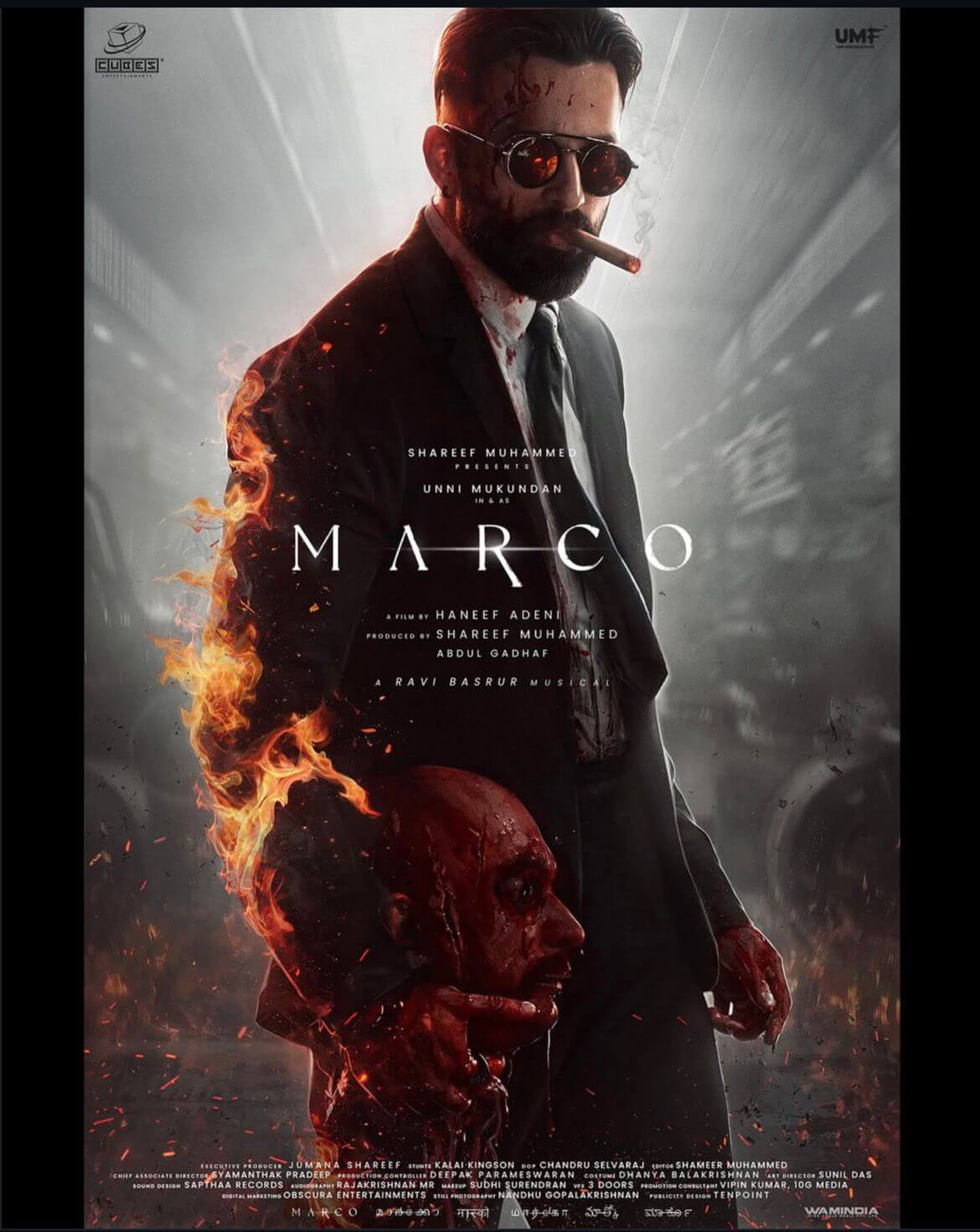 The movie is produced by Shareef Muhammad and Abdul Gadhaf. Rolling Starts From February 2024 Unni Mukundan will begin filming for his upcoming movie titled ‘Marco’ with director Haneef Adani in February next year, Unni Mukundan announced the information through his Twitter account on October 10, 2023.